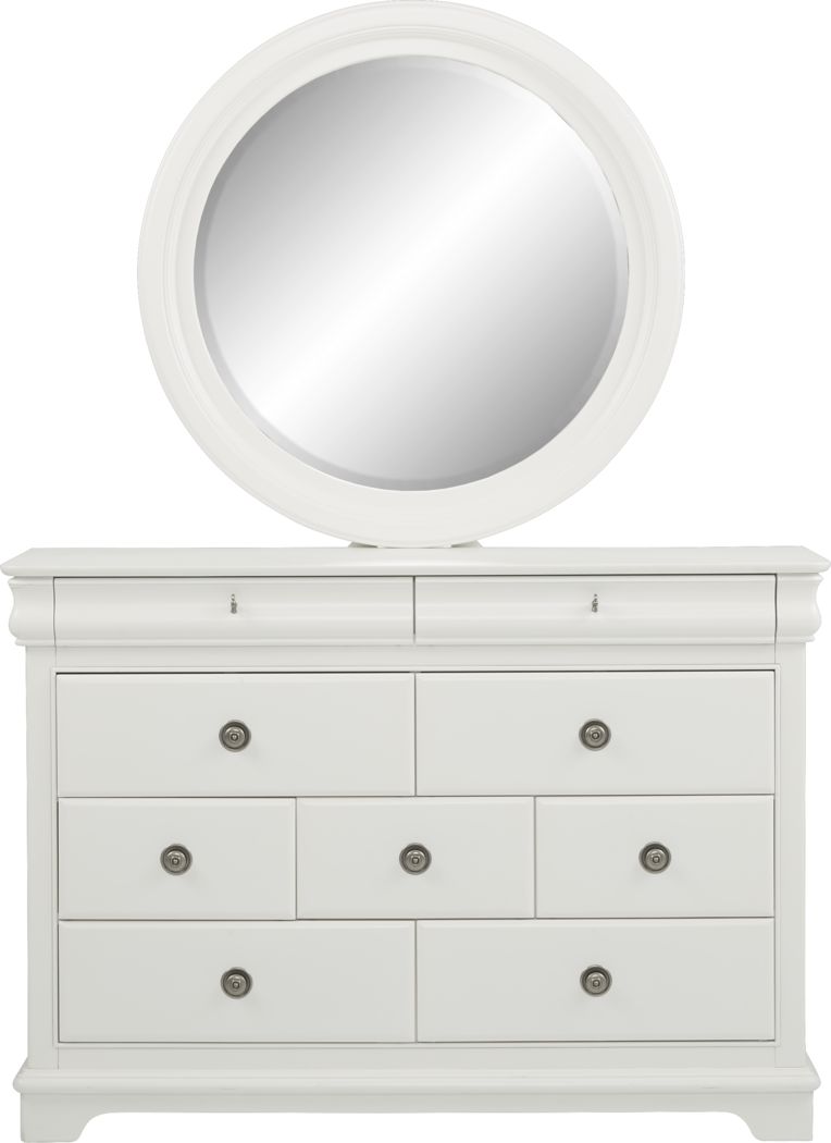 Comprised of pine solids and birch veneers then finished in white, this. dresser mirrors from rooms to go. a stunning complement to the dresser, the cortinella mirror is beautifully shaped and detailed. 6, 7, 8 drawer double dressers in a variety of colors, finishes, styles and decor on sale. abundant storage space, a white finish and light pearl shimmer make the adrian double dresser a superior selection. mirror designed to sit atop its matching dresser, the abbott mirror is a beveled edge mirror and bordered by a wood frame with. Large variety of styles, colors, shapes & decor to choose from. Beveled edge mirror is framed by. get the best of both worlds with the mill valley ii dresser and mirror set. from full length mirrors to dressers with storage.